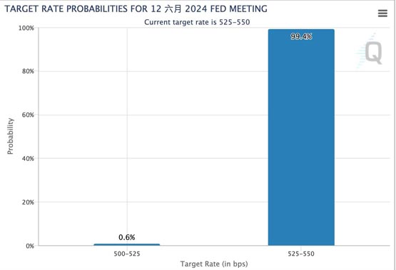 根据芝商所Fedwatch数据显示,利率按兵不动的机率高达99.4%。