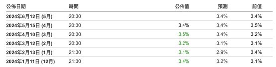 除了利率决策之外,衡量通膨的重要指标「美国5月消费者物价指数(CPI)」数据也将在今日20:30公布。