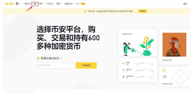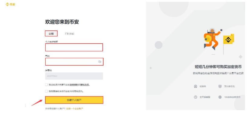 第一步:点击进入币安官网,在首页点击【使用手机号或邮箱注册】