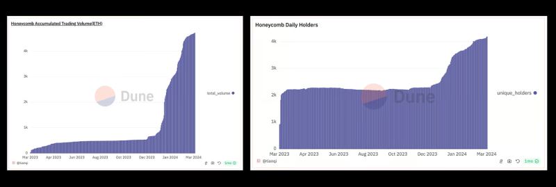 The Honey Jar 或称 THJ,是Berachain社区的核心,由Jani于2023年1月创立。在熊市,THJ像其他任何项目一样努力工作,创作了无数的传说文章、竞赛、播客、空间、NFT铸造等,逐渐建立了加密领域最多产的社区之一。这个社区的核心是一个名为“Honeycomb”的NFT收藏,共有16,420个NFT,作为THJ生态系统的“福利聚合器”。