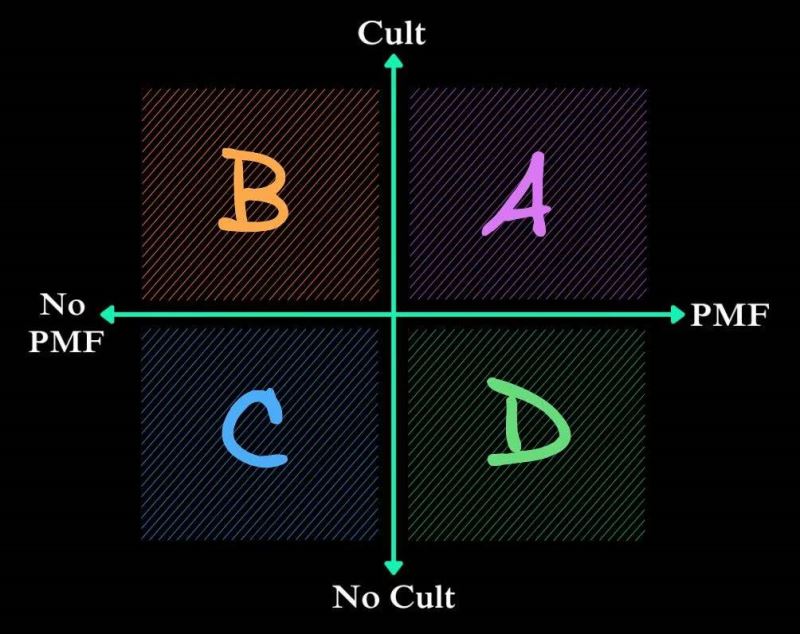 Cult = 社区对一个资产投入的 时间 努力 金钱 PMF = 对给定协议的持续需求(或对PMF的推测) A象限 = 发送至Valhalla B象限 = 目前加密货币中大多数高FDV的代币 C象限 = 你应该可能转向 AI D象限 = 许多即将成为中间件/基础设施的代币