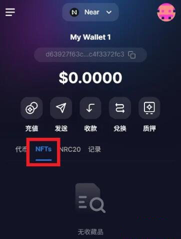 Sender 也是能直接显示NFT 的钱包,主要操作介面中选择NFTs