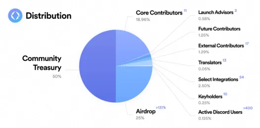 总体看,ENS 非常web3 的将总量50% 的代币空投给了ENS 用户和贡献者,虽然空投给ENS 贡献者的总量的25% 的代币有4 年的解锁期,不过如此巨量的空投势必对未来$ENS 代币造成不小的抛压。