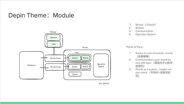 Depin不应该以设备作为单位,设备是不具备横向scale能力的;depin的核心在于Pin,而pin的核心则是授权码。我们将设备视为一系列传感器模组的集合,而每一个传感器模组的pin码,即为数据入网的许可,也是PoPW的认证许可,拥有入网权限的设备,贡献收到认可的设备,才能称之为矿机。因此整个Depin赛道的核心在于,如何让边缘设备贡献可计量,如果让不同设备相同传感器的贡献可以拥有一致的度量衡。