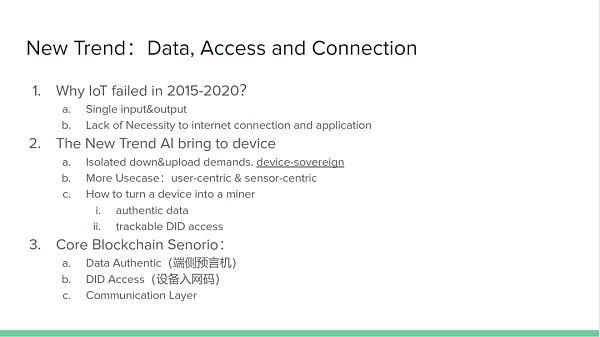 AI的出现,使得AI硬件自主联网的必要性提升了,设备入网成本有可能在未来3年里快速降低,结合存储成本,算力成本的下降,边缘算力/传感器的布局成本极大可能也在降低。那么多设备都已经完成布局,将其转化成矿机采集传感器数据,会出现一个tipping point.