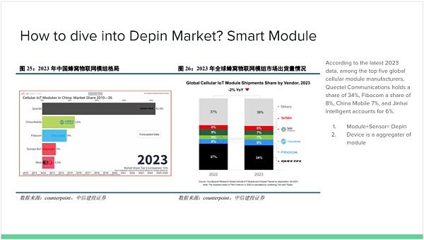 从整个产业链来看,上游芯片和下游设备制造商占据了大部分价值链,中间的模组层以高市场集中度,低毛利为特征,传统服务的设备主要包含:PC,手机,Pos机。由于其巨大的集中度,如果一旦部署了具有广泛共识的模组中间层,等于天然将各种存量设备迁移成为矿机。如果传统Web3的用户以人为单位,那么以模组为代表的中间层将使得大量智能设备进入web3,这些设备间的Tx会诞生大量的链上需求。