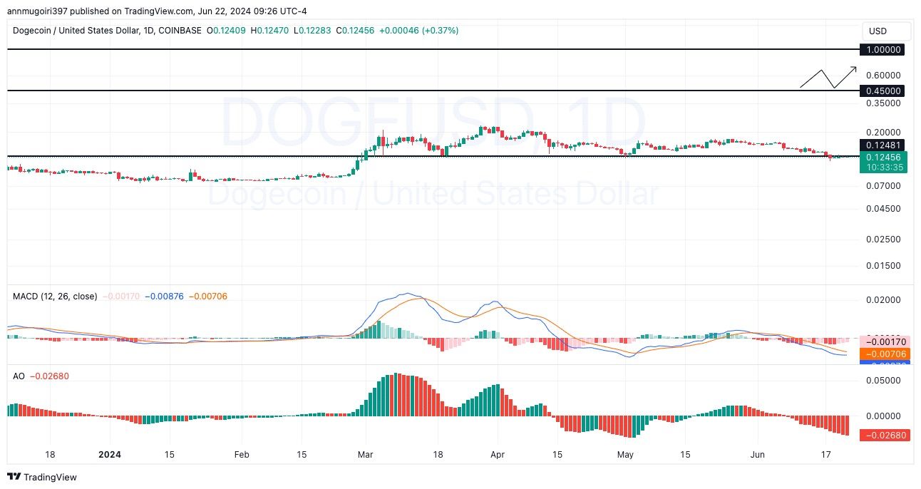 相反,如果跌破 0.12 美元,狗狗币可能会跌至 0.11 美元的支撑位。进一步下跌可能会使其价值降至 0.10 美元左右。这种情况反映了加密货币投资目前的投机性质。