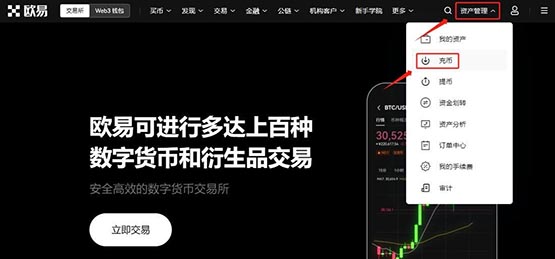 1、登录欧易OKX(没有账号的投资者可以点击注册)账户后,在首页点击“资产管理”进入充币页面