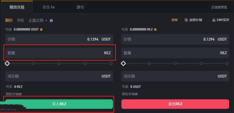 9、填写买入数量,点击【买入REZ】即可完成REZ币交易