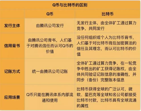 比特币和q币之间的区别