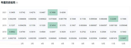 5、2021年(至7月19日为止),XLM币最高价格为0.7458美元;