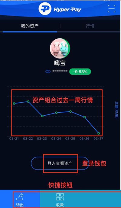 Hyper Pay 钱包新加入了快捷界面。无需输入 PIN 码/指纹识别/面部识别,用户便可快速查看资产价值走向、币价行情等信息。新界面还添加了快速按钮。资产显示:快捷界面的资产折线图,展现了钱包内实时资产组合在过去 7 天内的价值变化。币价行情: 用户无需登录解锁即可查看行情页面,更可以添加或减少币种行情,以及对行情自由排序。快速按钮:在快捷界面底部,钱包新添加的快速按钮可让用户快速转出(提示输入 PIN 密码),查看收款地址(无需输入 PIN 密码),以及查看锁仓(ᨀ示输入 PIN密码)。Hyper Pay 钱包不仅仅能够做到帮助用户聚合管理资产,还能够体现资产组合的收益情况,操作也更加便捷。
