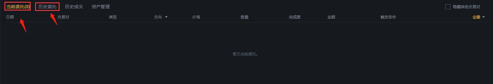 或者,您也可以在交易所查看未结订单/订单历史记录