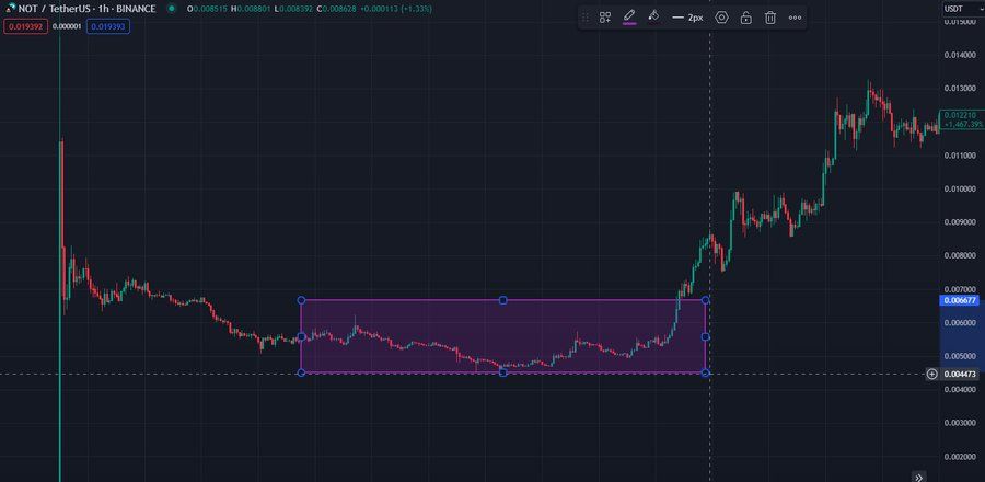 在大幅上涨之后,代币通常有很大可能会进行调整,特别是在像我们看到的 $NOT 这种炒作行情中。