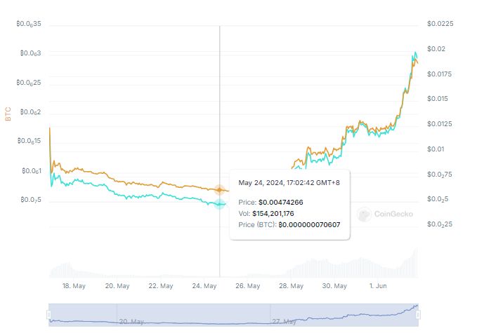 以下是$NOT在$BTC近期下跌至66k美元之间的累积情况(5月23日至24日)的示例。