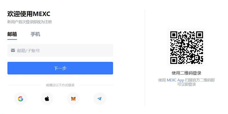 1、打开MEXC交易所网站,选择邮箱或手机注册