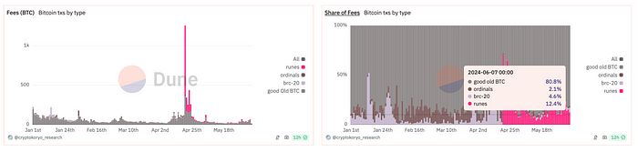 (3)该资产的火热可以进一步解决比特币的安全预算问题。符文的交易可以为网络贡献更多的交易费用,特别在减半后,矿工的出块产出减少后有了新的收入来源,对维护网络的安全性和可持续性有积极作用。
