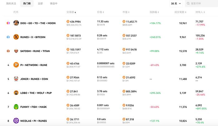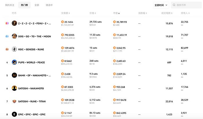 剔除掉交易量很低且单位价格很高的ZZZ符文后,DOG的市值在发行后基本全时段保持市值第一的状态。