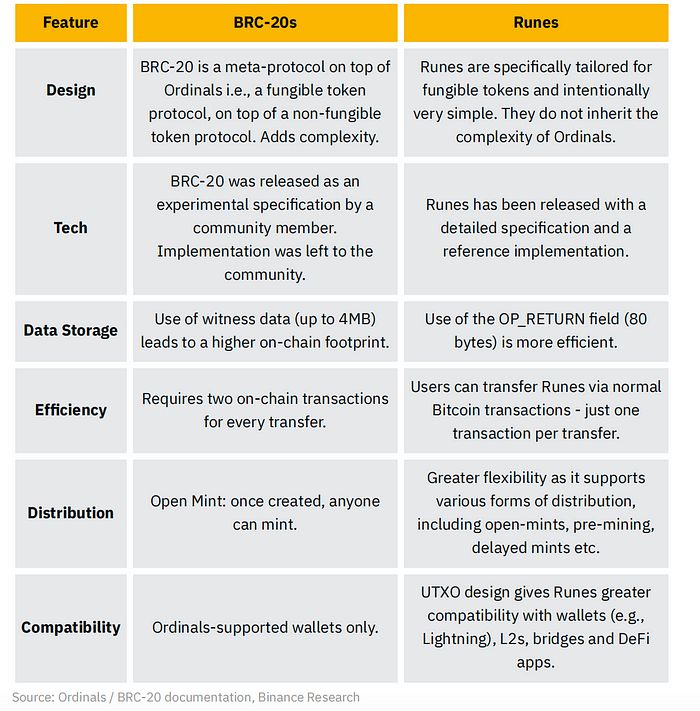 (1)Runes是专门设计为可替换,基于BTC原生的架构即可,不依赖链下数据且只需要一次铸造,更为简单高效。而BRC-20是以更适合构建非同质化的Ordinals协议为基础的,依赖链下索引,且需要铸造两次,整体更为复杂。