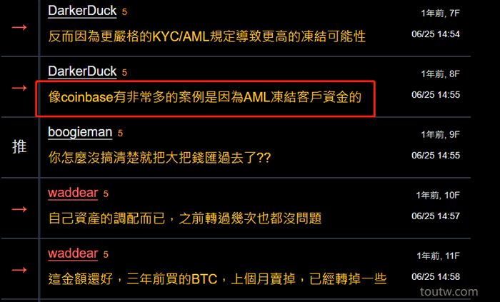 1.台湾ptt:虽然Coinbase是最合规的交易所,但反而因为更严格的KYC/AML规定导致更高的冻结可能性!