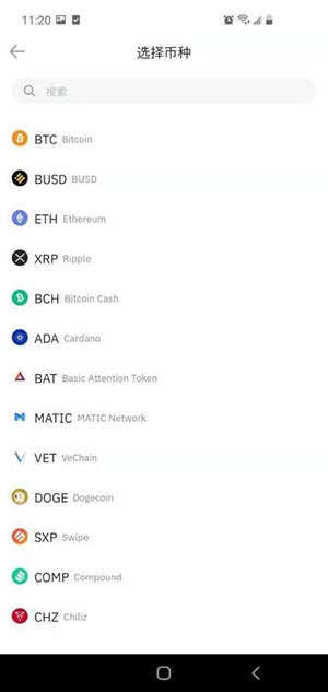 7.选择您要购买的币种,以选择比特币为例,点击BTC。