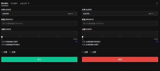 6.PEOPLE/USDT,可以看到PEOPLE实时行情