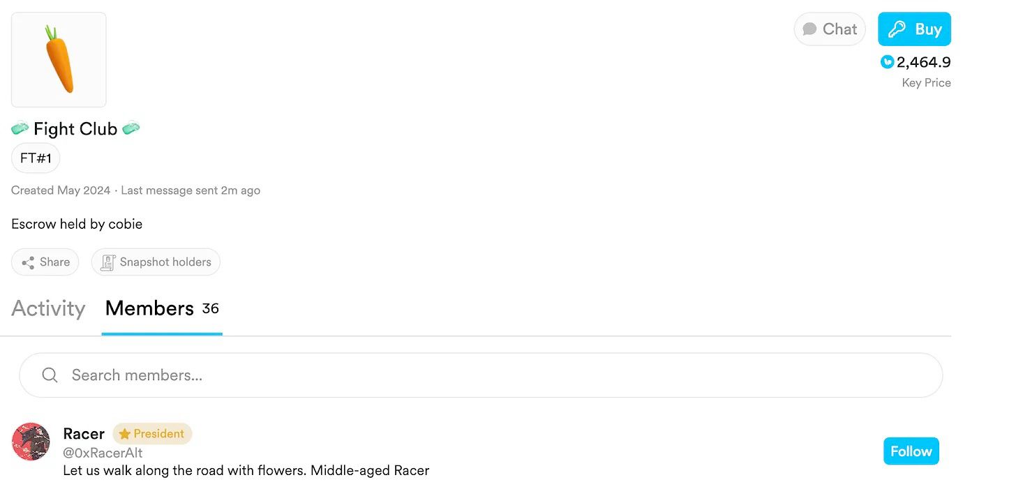 下面的俱乐部(搏击俱乐部)是 FT#1 所代表的第一家俱乐部,而 Racer 实际上是其总裁,这反映在 key 的价格中。