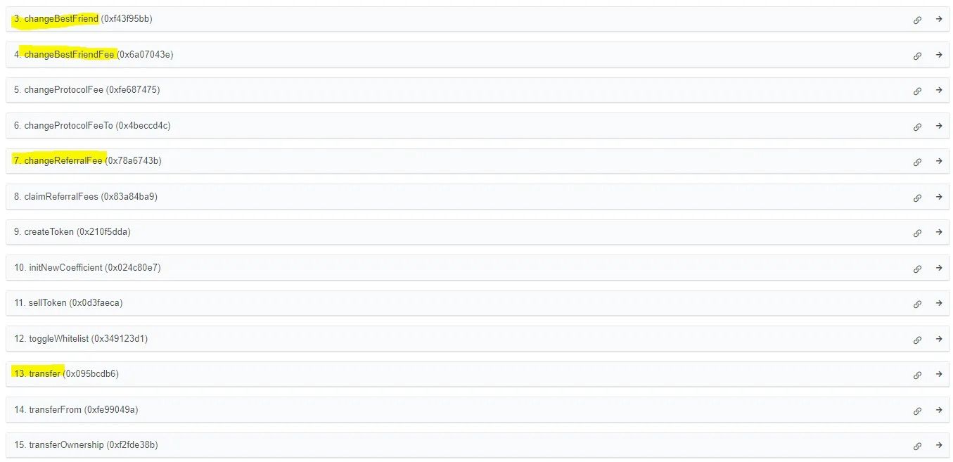 我们通过 Base Scan 合约界面观察到的有趣现象是更换好友(changeBestFriend)和更换好友费用(changeBestFriendfee)的变化,我们可以推测这将用于允许任何人添加一个最好的朋友,这可以让我们在交易 keys 时减少或免除手续费。