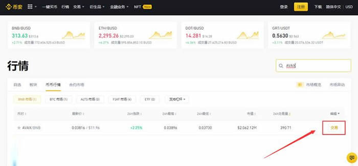Binance(点击注册)是全球领先的区块链资产交易平台之一,提供超过 100 多种数字加密货币的交易服务。Binance 还提供了 AVAX/USDT 等交易对。