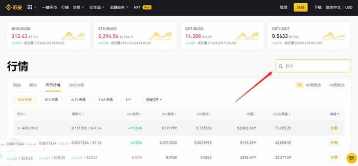 第一步:登录币安官网注册(点击注册),进入报价页面