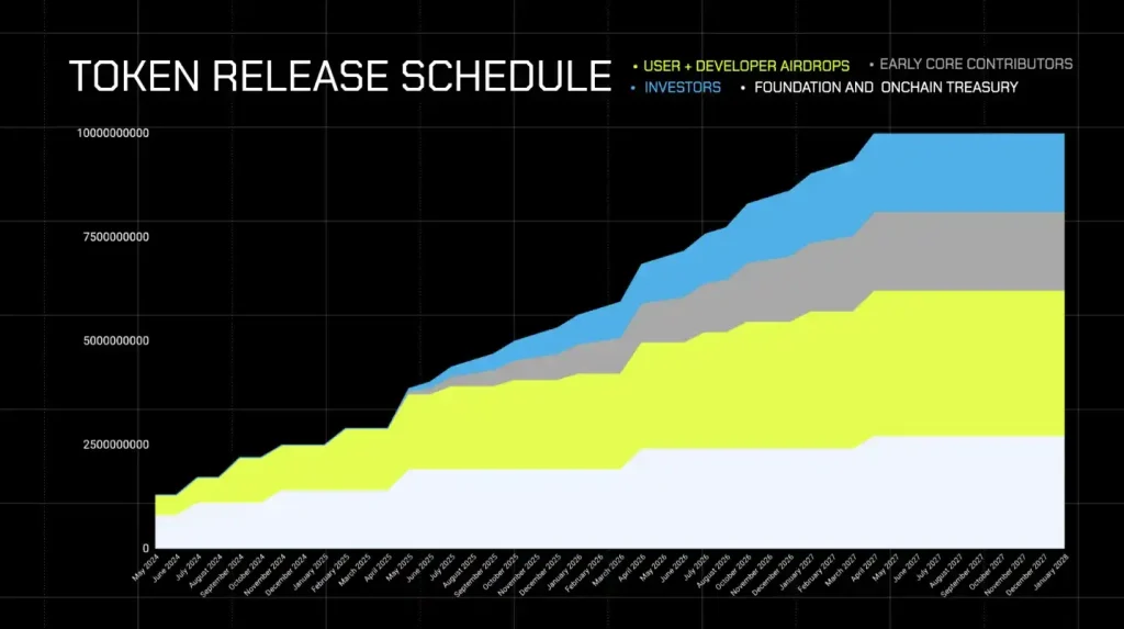 - 35%:用户及开发者空投。其中第一季空投分配5.5% ,第二季空投分配5% ,剩余代币将在未来的空投轮次中逐步分发;