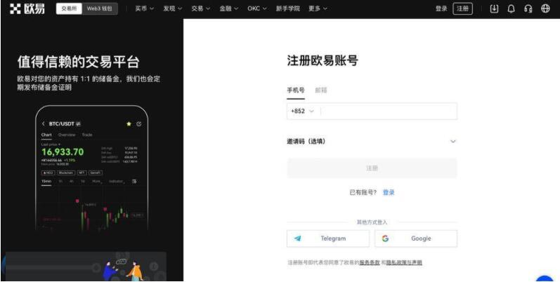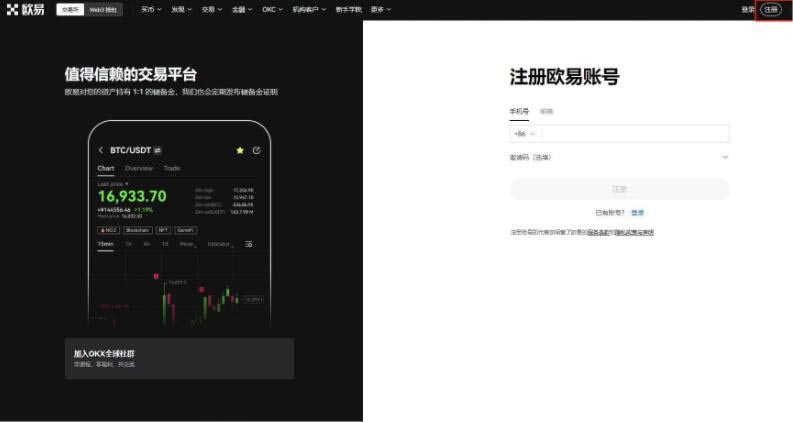 1. 打开欧易官网,在首页点击注册,进入注册页面