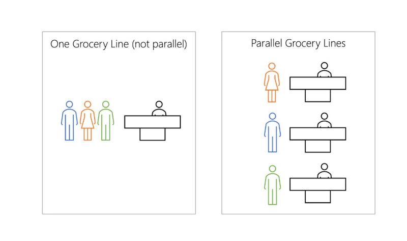 在区块链中,并行执行可以通过一个简单的类比来理解。想象一下,一家杂货店需要为顾客的购买行为收取费用。如果商店只有一条结账通道和收银机,那么队伍就会移动缓慢,使顾客感到沮丧,并可能促使他们去其他地方购物。这家商店采用了多条结账通道和收银机来加快流程。这是在行动中的并行处理,使商店能够同时处理多个顾客的需求,而不是一次一个。