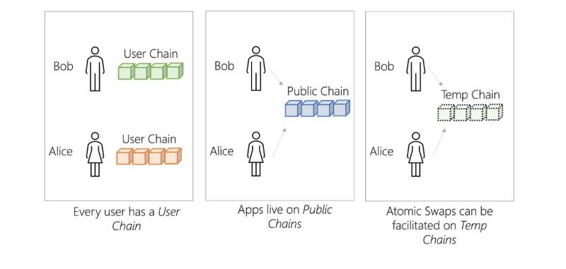 Linera还引入了临时链的概念,专门用于处理原子交换等复杂操作。与需要在主链上记录交易的协议相比,该特性提供了一个显著的优势,后者可能会造成瓶颈。在Linera中,在原子交换期间创建一个临时链,独立于其他交易并与其他交易并行处理。一旦交换结束,临时链就会消失,更新后的状态会反映在相关的用户链中。