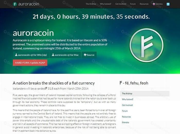 有史以来第一个加密货币空投被认为是冰岛创建的 Auroracoin 加密货币。它被设计为国家数字货币。所有注册的人都免费获得 31.80 Auroracoins (AUR) 的加密货币空投。但空投后AUR价格暴跌,该项目被抛弃。