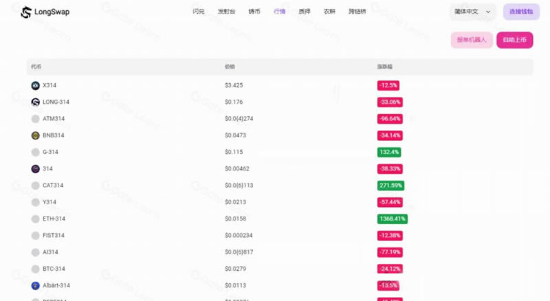 在BSC链上,X314代币于3月27日上线,仅两周时间就实现了千倍涨幅,初始价格为0.00349美元,当前价格约为3美元左右,曾一度突破5.3美元。目前可以在X314.app上进行兑换和购买。