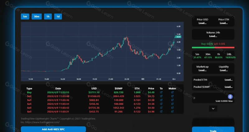 在2024年3月20日晚上,ERC314协议代币SIMP正式上线。该项目之前进行了20 ETH的资金募集,代币总量为100万枚。资金分配比例为45%用于流动性提供(LP)、45%分给种子轮预售者,10%用于多签名的CEX钱包。这个项目的独特之处在于,用户可以通过向其合约转账ETH来购买代币,也可以通过向其合约发送代币来出售,而且与DEX的交易相比,gas费用要低得多。