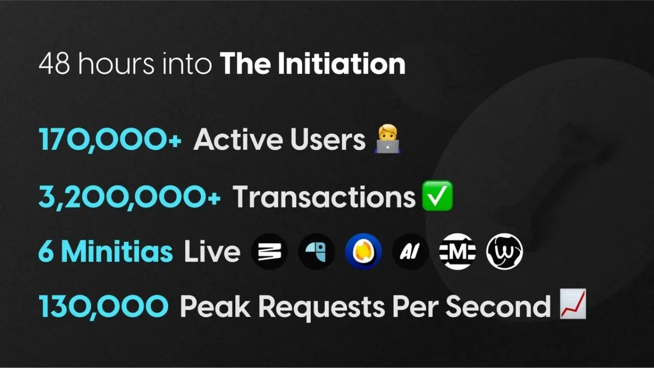 Initia 交互热度非常高,根据 Initia 官方 X 平台最新发布的数据显示,Initia 开放公共测试网的 48 h 内,活跃用户超过 17 万,交易笔数超过 320 万。