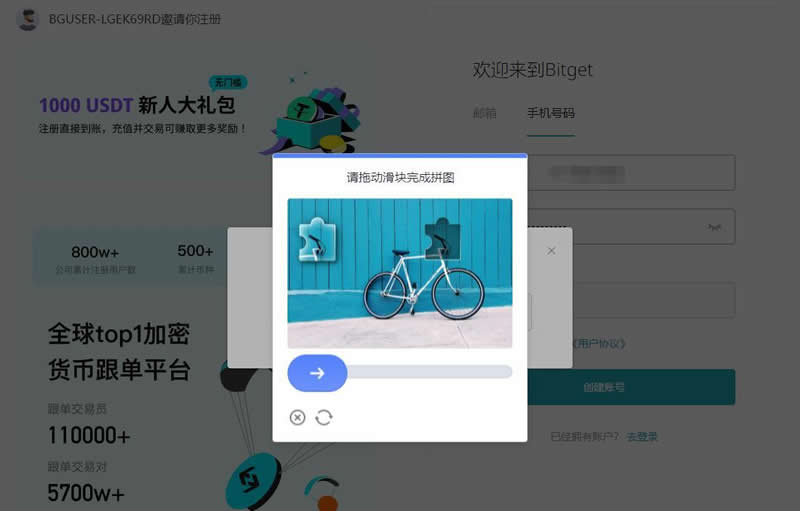 1、打开Bitget交易所(点此注册),选择“手机号码”输入手机号,根据提示设置密码,点击“创建账号”(APP下载:点击下载)