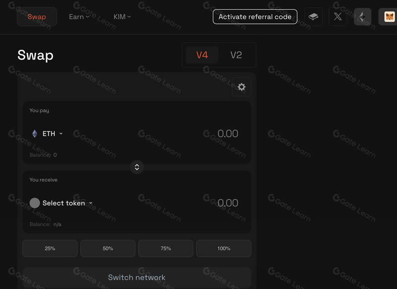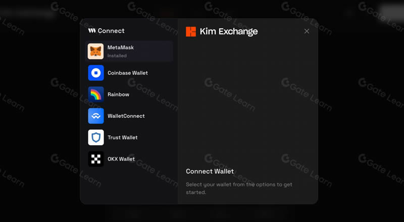 访问 KIM 交易所并连接可兼容的加密货币钱包。该钱包将用于交易所上的所有交易和交互。