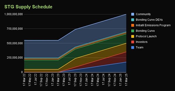 STG 代币的经济模型设计旨在支持平台的长期增长和用户参与: