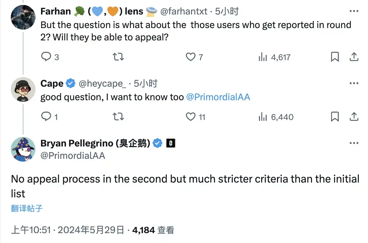 · 第二阶段为「审判」阶段,LayerZero 官方将在该阶段内依照特定规则进行女巫筛查,筛查结果将于 5 月 18 日公布,在该阶段被查出的地址将不会获得任何空投分配。