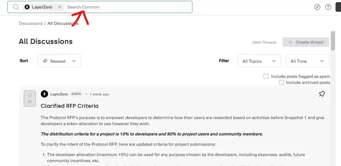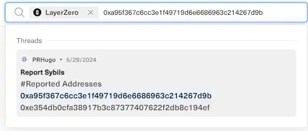 由于新的「赏金」活动已改为在 Commonwealth 上运行,我们当下也可以通过相关主页来实时查询地址是否已被列入女巫名单。(主页链接:https://commonwealth.im/layerzero/discussions)