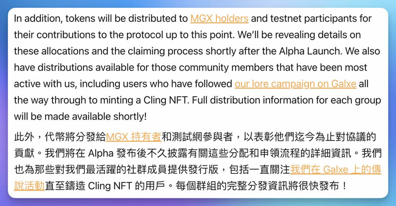 如果你尚未跟到之前的快照,可以尝试在第三次快照(TGE)前持有MGX 以获得空投资格。
