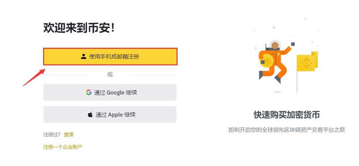 1.登录币安官网(官方注册 官方下载),点击【使用手机号或邮箱注册】,进入注册页面