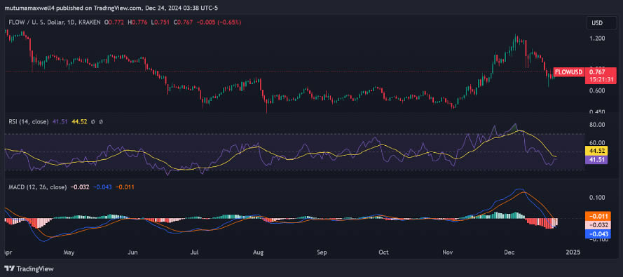 如果 FLOW 能够突破阻力位并保持势头,它就有可能恢复。市场当前的盘整阶段表明可能出现突破,这可能会带来抛售压力并推高价格,也可能导致进一步下跌。由于市场动态仍然不稳定,密切监控至关重要。