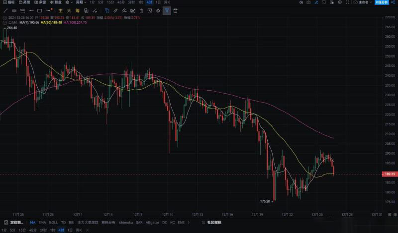 在我看来,2025 年的以太坊将不仅仅是一个区块链网络,它将成为整个加密行业的中枢系统。我们可能会看到它超越此前的历史高点,价格突破 7,000 美元的保守预测。而更重要的是,以太坊将引领整个区块链行业进入一个更加成熟、更加开放、更加多元化的新时代。从行情K线来看,目前我正在等待以太坊的日线超卖信号。上一次日线超卖出现在九月初,当时价格在震荡两个月(约60根蜡烛)后,开启了单边上涨行情。现在,以太坊再次接近EMA100或EMA200均线支撑位置。如果叠加超卖信号,将可能是现货的一个不错买入机会。