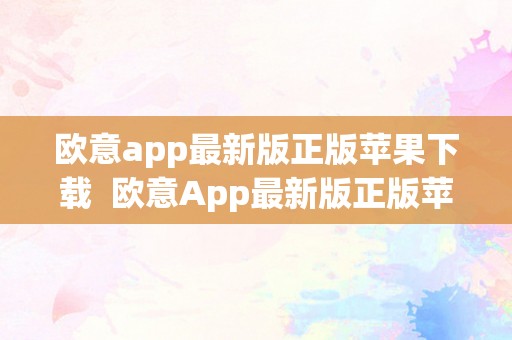欧意app最新版正版苹果下载 欧意App最新版正版苹果下载及欧意控股集团