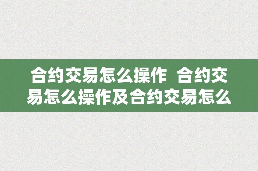 合约交易怎么操作 合约交易怎么操作及合约交易怎么操作视频
