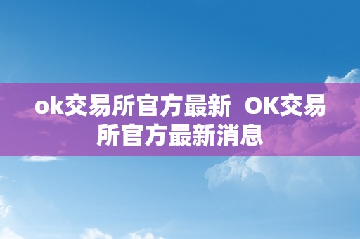 OK交易所一直以来都是数字货币交易领域中备受关注的平台之一。作为全球知名的数字货币交易所,OK交易所一直在不断创新和发展,为用户提供更加便捷、安全的交易服务。OK交易所官方发布了一系列最新消息,让用户们更加了解这个平台的动态和发展方向。